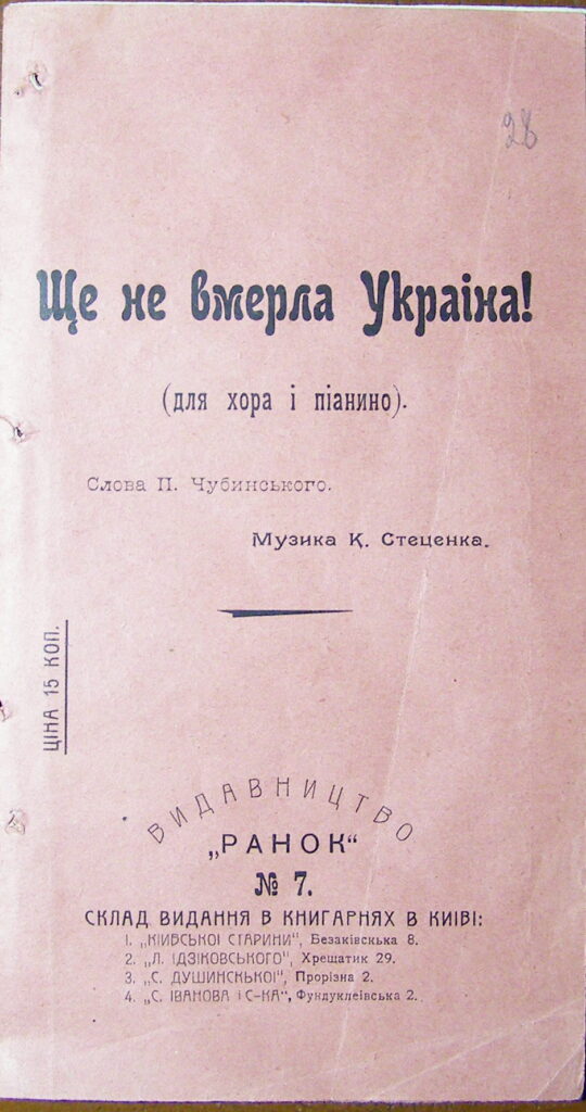 У Чернігівському обласному історичному музеї імені В.В. Тарновського зберігаються цікаві матеріали пов’язані з непростою історією гімну. Зокрема це справа проти київського видавця Олекси Коваленка, який видав у травні 1910 р. текст гімну на слова П. Чубинського та музику К. Стеценка. Цікаво, що О. Коваленко народився на Вороніжчині, тобто історичної Слобожанщині але був твердий український патріот. Видавця Київська судова палата звинуватила у друці твору на “малороссійском наречіи”, що було заборонено сумнозвісними Емським указом та Валуєвським циркуляром. Йому присудили 2 тижні в’язниці та знищення накладу брошури.